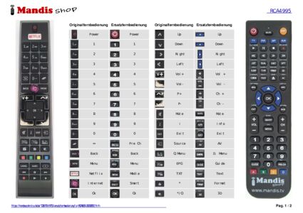 Ein Dokument ist enthalten, um die Verwendung der neuen Fernbedienung zu erleichtern, indem es die Tastenbelegung zeigt.