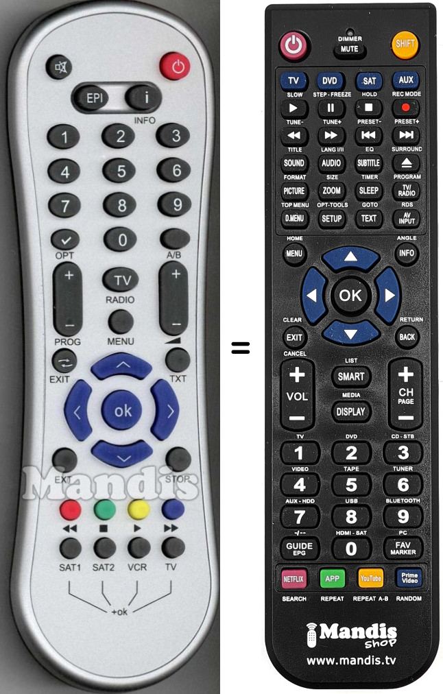 Es handelt sich jedoch nicht um eine Universalfernbedienung sondern um eine Fernbedienung die das Original ersetzt.