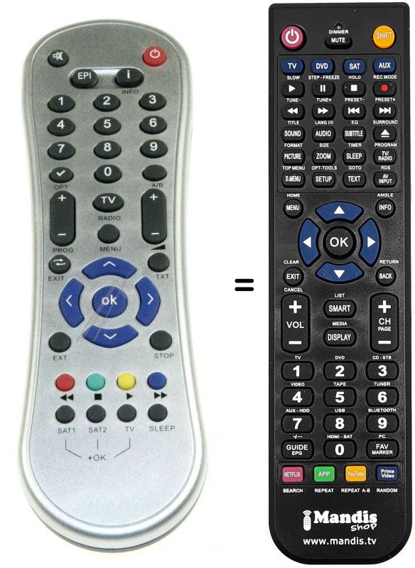 Es handelt sich jedoch nicht um eine Universalfernbedienung sondern um eine Fernbedienung die das Original ersetzt.