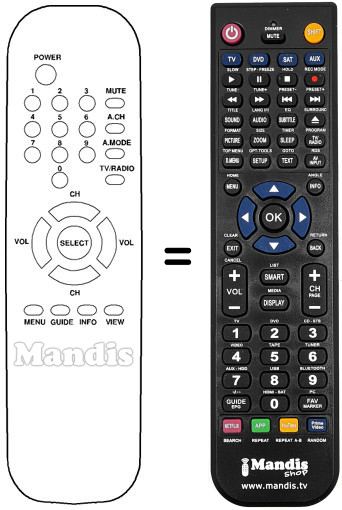 Fernbedienung, die das Original und die Gesamtheit seiner Funktionen, vollständig ersetzt. Es handelt sich jedoch nicht um eine Universalfernbedienung sondern um eine Fernbedienung die das Original ersetzt. Sie erhalten eine nach Einlegen der Batterien sofort einsatzbereite Fernbedienung. Jegliches Programmieren entfällt. Wir geben umfassende Garantie dafür, dass diese Fernbedienung alle Funktionen der Originalfernbedienung erfüllt.