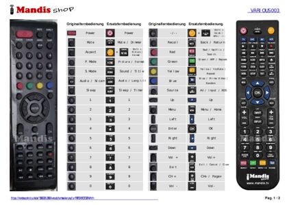 Ein Dokument ist enthalten, um die Verwendung der neuen Fernbedienung zu erleichtern, indem es die Tastenbelegung zeigt.