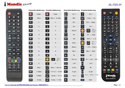 Ein Dokument ist enthalten, um die Verwendung der neuen Fernbedienung zu erleichtern, indem es die Tastenbelegung zeigt.
