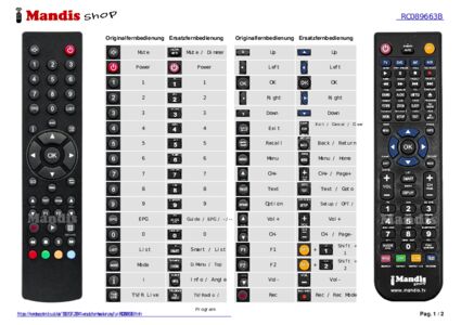 Ein Dokument ist enthalten, um die Verwendung der neuen Fernbedienung zu erleichtern, indem es die Tastenbelegung zeigt.