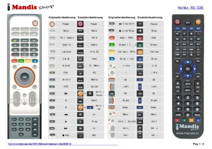 Ein Dokument ist enthalten, um die Verwendung der neuen Fernbedienung zu erleichtern, indem es die Tastenbelegung zeigt.