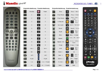 Ein Dokument ist enthalten, um die Verwendung der neuen Fernbedienung zu erleichtern, indem es die Tastenbelegung zeigt.