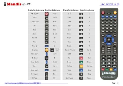 Ein Dokument ist enthalten, um die Verwendung der neuen Fernbedienung zu erleichtern, indem es die Tastenbelegung zeigt.