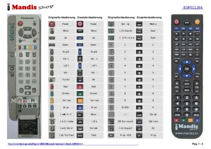 Ein Dokument ist enthalten, um die Verwendung der neuen Fernbedienung zu erleichtern, indem es die Tastenbelegung zeigt.