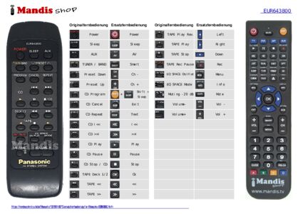 Ein Dokument ist enthalten, um die Verwendung der neuen Fernbedienung zu erleichtern, indem es die Tastenbelegung zeigt.