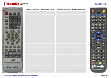 Ein Dokument ist enthalten, um die Verwendung der neuen Fernbedienung zu erleichtern, indem es die Tastenbelegung zeigt.