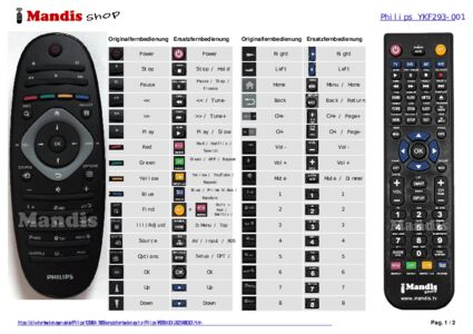 Ein Dokument ist enthalten, um die Verwendung der neuen Fernbedienung zu erleichtern, indem es die Tastenbelegung zeigt.