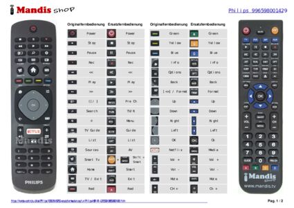 Ein Dokument ist enthalten, um die Verwendung der neuen Fernbedienung zu erleichtern, indem es die Tastenbelegung zeigt.