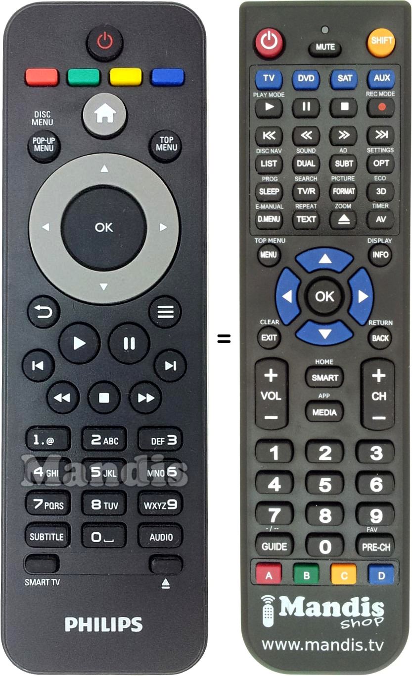 Power, Red, Green, Yellow, Blue, Home, Pop-Up Menu / Disc Menu, Top Menu, Up, Right, Down, Left, OK, Back, =, Play, Pause, I<, >I, Stop, <<, >>, 1, 2, 3, 4, 5, 6, 7, 8, 9, 0, Subtitle, Audio, Smart TV, Eject