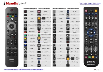 Im Folgenden zeigen wir Ihnen die Zuordnung jedes einzelnen Knopfes der Originalfernbedienung zu der Taste, die dieselbe Funktion auf der Ersatzfernbedienung ausführt. In einigen Fällen müssen Sie möglicherweise die UMSCHALT-Taste drücken, bevor Sie eine andere Taste drücken, um bestimmte Aktionen auszuführen. Diese zusätzlichen Funktionen werden oft wenig genutzt und dienen dazu, das Verständnis der Ersatzfernbedienung zu erleichtern oder weil die Originalfernbedienung mehr Tasten hat als das entsprechende Modell.