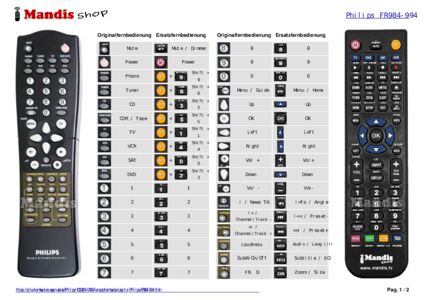 Diese Fernbedienung ersetzt die meisten Funktionen Ihres FR984-994. Es ist keine Universalfernbedienung, sondern eine Kopie mit den meisten Tasten und Funktionen Ihres Originals.