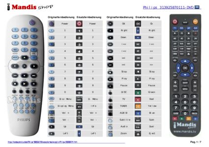 Ein Dokument ist enthalten, um die Verwendung der neuen Fernbedienung zu erleichtern, indem es die Tastenbelegung zeigt.