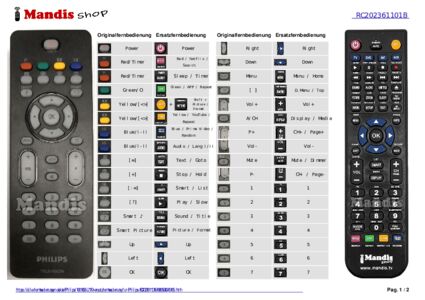 Ein Dokument ist enthalten, um die Verwendung der neuen Fernbedienung zu erleichtern, indem es die Tastenbelegung zeigt.