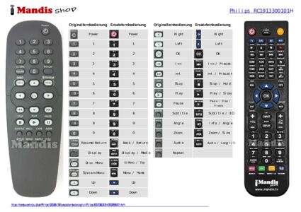 Die original Fernbedienung meines Panasonic Beamers war unreperabl defekt. Ein Ersatz war nirgends zu finden. Zum Glück entdeckte ich Mandis und bestellte die Ersatzfernbedienung nach der Originalnummer. Die nach kurzer Lieferzeit eingelangte Ersatzfernbedienung erfüllt alle, für den Betrieb wesentlichen Funktionen und es gibt dafür eine perfekte Anleitung.Das umständliche Einstellen von Schärfe, Zoom, Menue usw. direkt am Beamer geht jetzt wieder per Fernbedienung. Danke Mandis!!