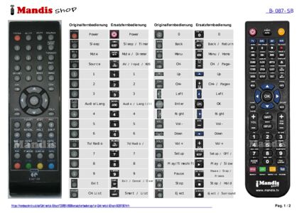 Ein Dokument ist enthalten, um die Verwendung der neuen Fernbedienung zu erleichtern, indem es die Tastenbelegung zeigt.