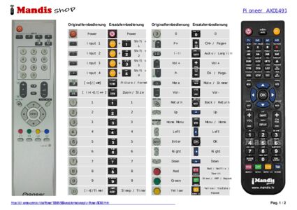 Diese Fernbedienung ersetzt Ihre AXD1491$E in vollem Umfang und bietet alle Funktionen des Originals.