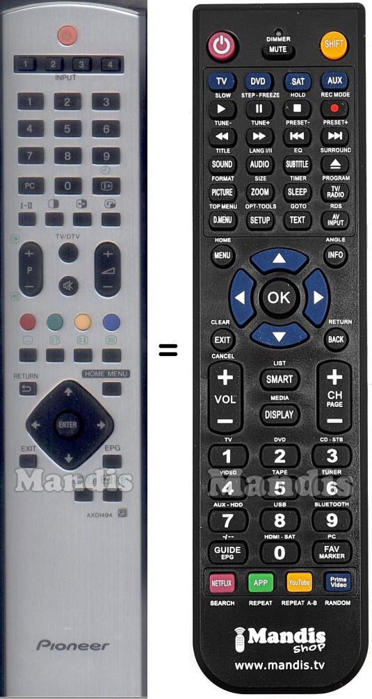 Diese Fernbedienung ersetzt Ihre AXD1494 in vollem Umfang und bietet alle Funktionen des Originals.