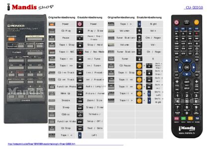 Diese Fernbedienung ersetzt Ihre CU-DC010 in vollem Umfang und bietet alle Funktionen des Originals.