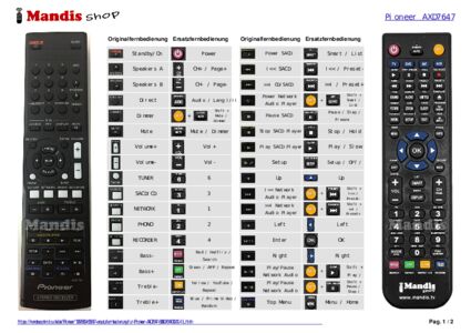 Diese Fernbedienung ersetzt die meisten Funktionen Ihres AXD7647 (8300764700010-IL). Es ist keine Universalfernbedienung, sondern eine Kopie mit den meisten Tasten und Funktionen Ihres Originals.