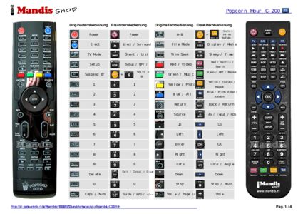 Ein Dokument ist enthalten, um die Verwendung der neuen Fernbedienung zu erleichtern, indem es die Tastenbelegung zeigt.