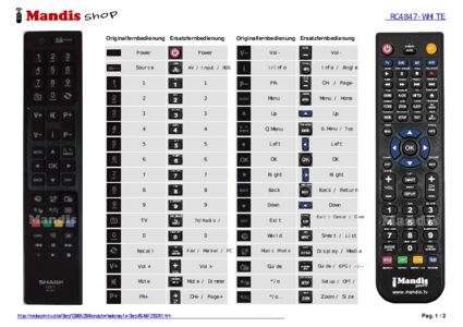 Ein Dokument ist enthalten, um die Verwendung der neuen Fernbedienung zu erleichtern, indem es die Tastenbelegung zeigt.