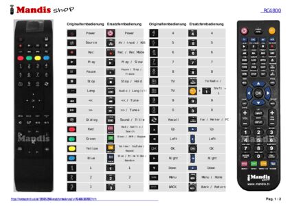 Ein Dokument ist enthalten, um die Verwendung der neuen Fernbedienung zu erleichtern, indem es die Tastenbelegung zeigt.