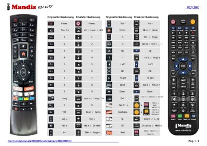 Ein Dokument ist enthalten, um die Verwendung der neuen Fernbedienung zu erleichtern, indem es die Tastenbelegung zeigt.