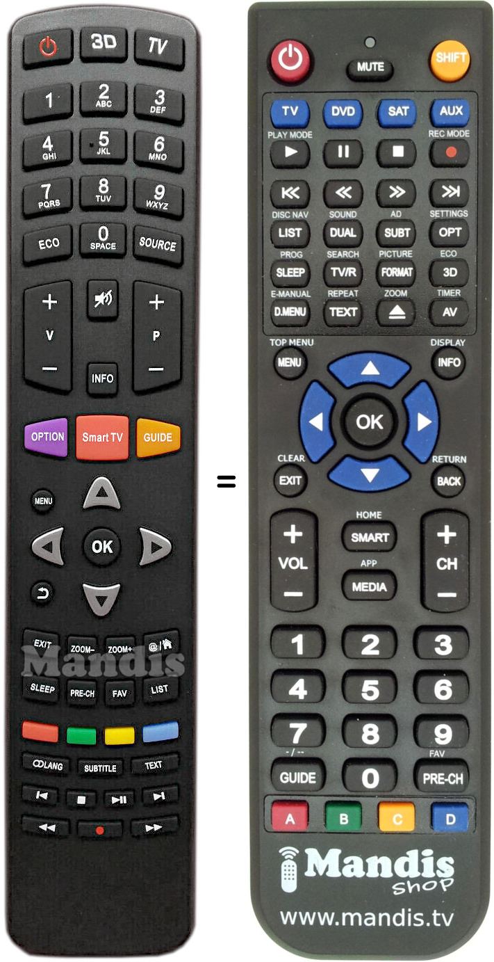Wir bieten dir eine Ersatzfernbedienung an, die deine Originalfernbedienung in all ihren Funktionen vollständig ersetzt. Es handelt sich nicht um eine Universalfernbedienung, sondern um eine exakte Kopie mit identischen Tasten und Funktionen.