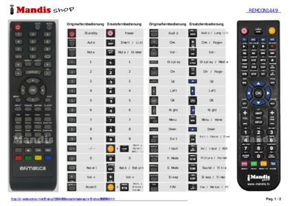 Ein Dokument ist enthalten, um die Verwendung der neuen Fernbedienung zu erleichtern, indem es die Tastenbelegung zeigt.