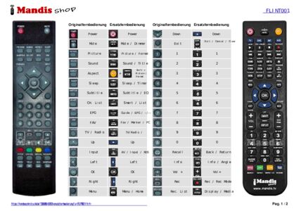 Ein Dokument ist enthalten, um die Verwendung der neuen Fernbedienung zu erleichtern, indem es die Tastenbelegung zeigt.