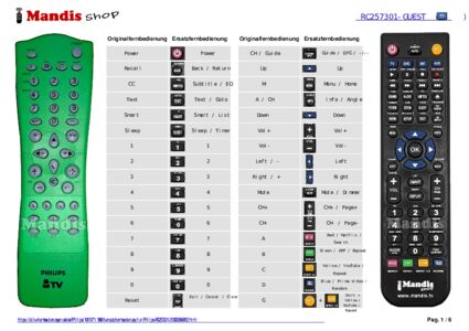 Diese Fernbedienung ersetzt Ihre RC 2573 / 01 in vollem Umfang und bietet alle Funktionen des Originals.