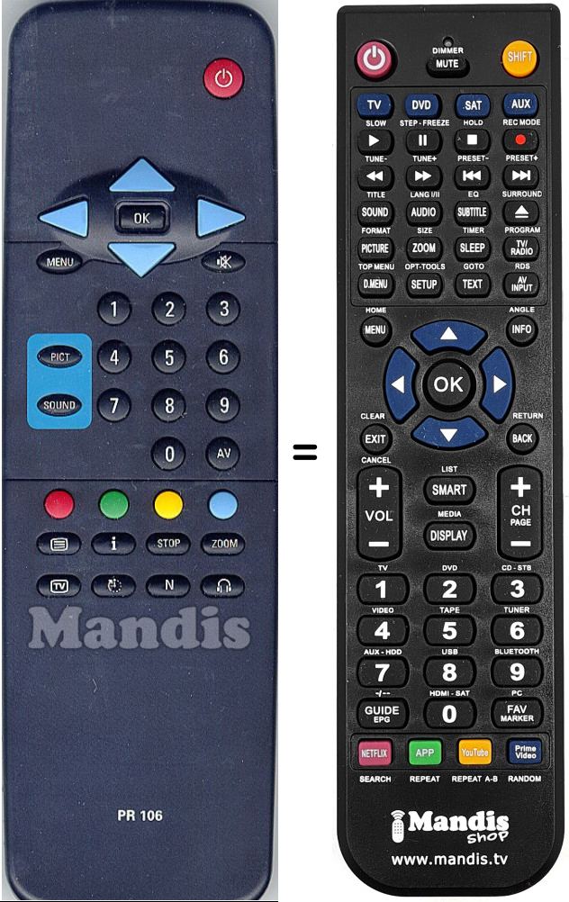 Es handelt sich jedoch nicht um eine Universalfernbedienung sondern um eine Fernbedienung die das Original ersetzt.
