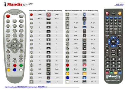 Ein Dokument ist enthalten, um die Verwendung der neuen Fernbedienung zu erleichtern, indem es die Tastenbelegung zeigt.