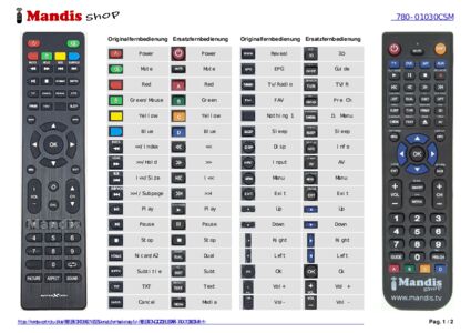 Ein Dokument ist enthalten, um die Verwendung der neuen Fernbedienung zu erleichtern, indem es die Tastenbelegung zeigt.