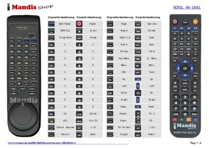 Diese Fernbedienung ersetzt Ihre RR-DV 93 in vollem Umfang und bietet alle Funktionen des Originals.