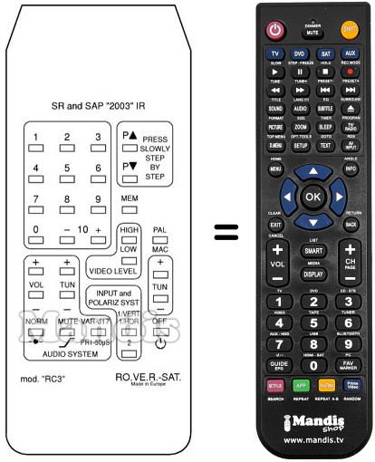 Fernbedienung, die das Original und die Gesamtheit seiner Funktionen, vollständig ersetzt.