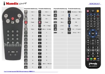 Ein Dokument ist enthalten, um die Verwendung der neuen Fernbedienung zu erleichtern, indem es die Tastenbelegung zeigt.