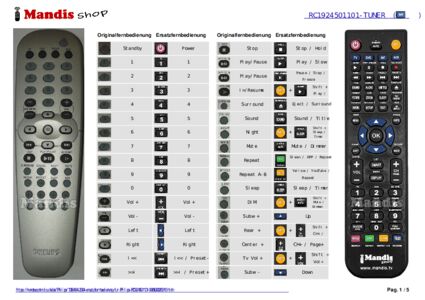 Ein Dokument ist enthalten, um die Verwendung der neuen Fernbedienung zu erleichtern, indem es die Tastenbelegung zeigt.