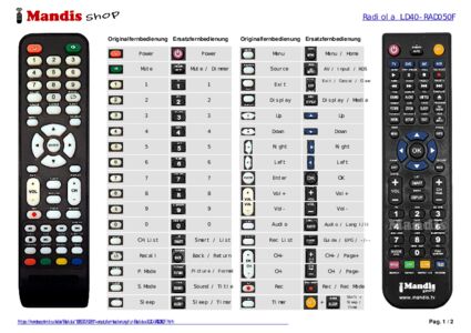 Ein Dokument ist enthalten, um die Verwendung der neuen Fernbedienung zu erleichtern, indem es die Tastenbelegung zeigt.