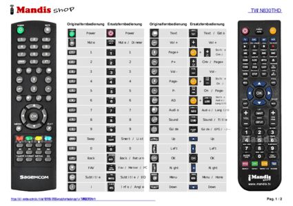 Ein Dokument ist enthalten, um die Verwendung der neuen Fernbedienung zu erleichtern, indem es die Tastenbelegung zeigt.