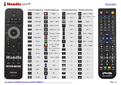Ein Dokument ist enthalten, um die Verwendung der neuen Fernbedienung zu erleichtern, indem es die Tastenbelegung zeigt.