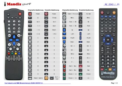 Diese Fernbedienung ersetzt Ihre RC 2543 / 01 (312814712071) in vollem Umfang und bietet alle Funktionen des Originals.