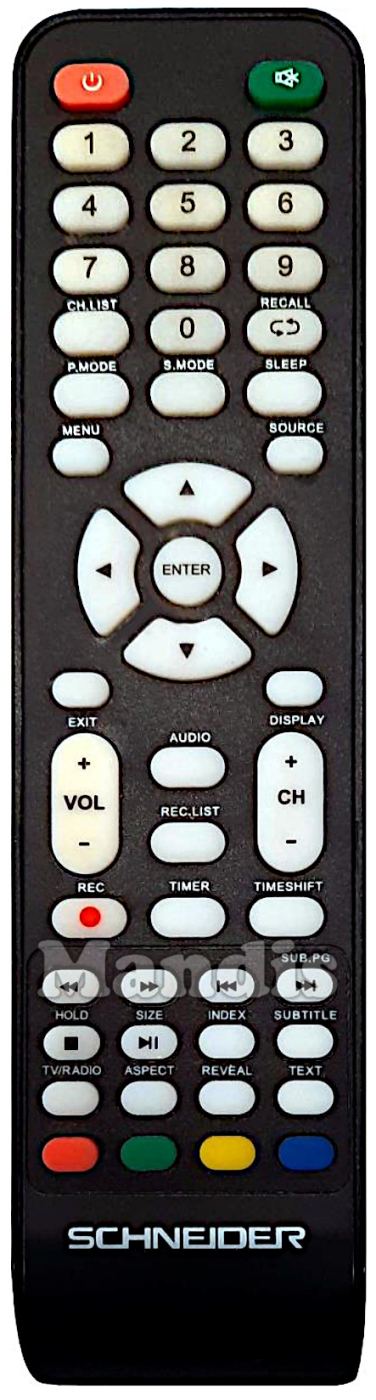 Fernbedienung Original SCHNE002 zur Steuerung der TV-Geräte der Marke SCHNEIDER. Es handelt sich um eine Originalfernbedienung.