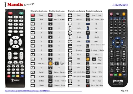 Ein Dokument ist enthalten, um die Verwendung der neuen Fernbedienung zu erleichtern, indem es die Tastenbelegung zeigt.