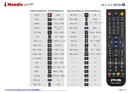 Ein Dokument ist enthalten, um die Verwendung der neuen Fernbedienung zu erleichtern, indem es die Tastenbelegung zeigt.
