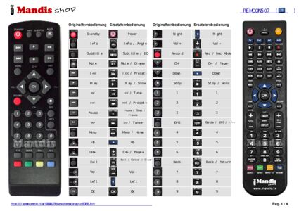 Ein Dokument ist enthalten, um die Verwendung der neuen Fernbedienung zu erleichtern, indem es die Tastenbelegung zeigt.