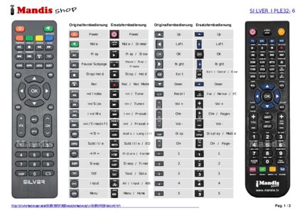 Ein Dokument ist enthalten, um die Verwendung der neuen Fernbedienung zu erleichtern, indem es die Tastenbelegung zeigt.